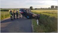Ein Fahrzeuglenker verlor aus unbekannter Ursache die Kontrolle über seinen PKW und fuhr in den Straßengraben wo er auf eine betonierte Feldzufahrt anprallte und sein Wagen sich dann auf das Dach überschlug.