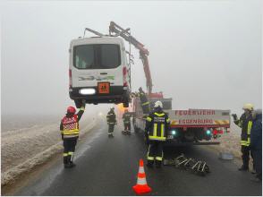 Aus unbekannter Ursache fuhr ein Kleinbus in den Straßengraben. Durch die nachgeforderte FF Eggenburg wurde dieser aus dem Straßengraben geborgen und sicher abgestellt.